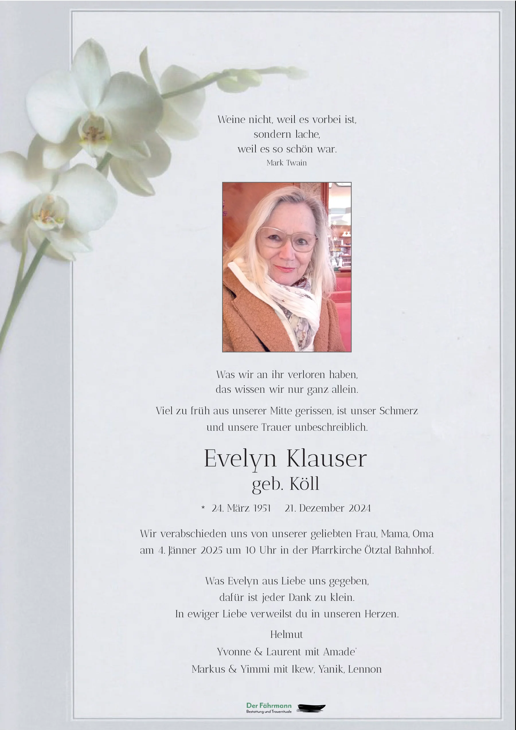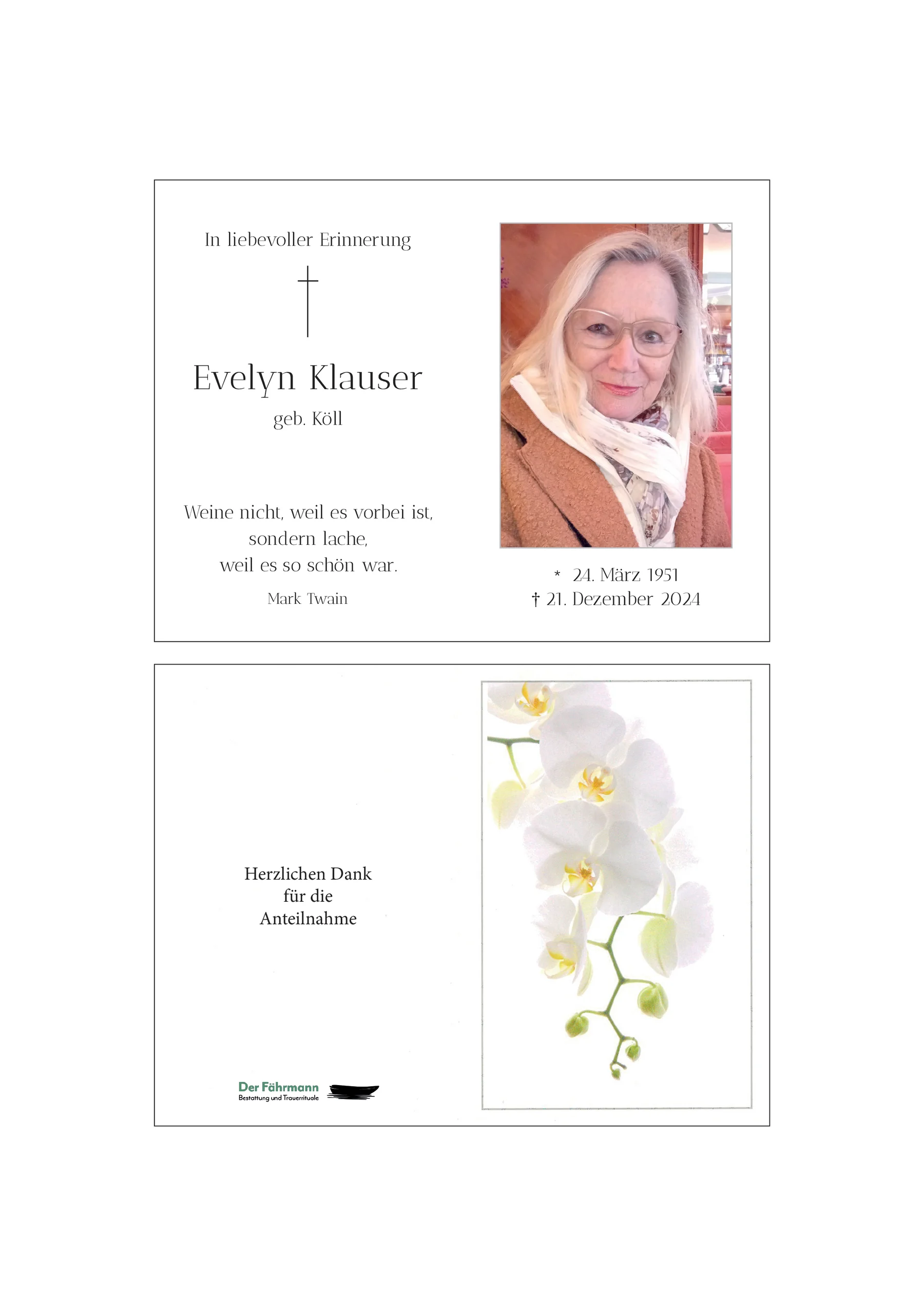 Kondolenzbuch für Evelyn Klauser