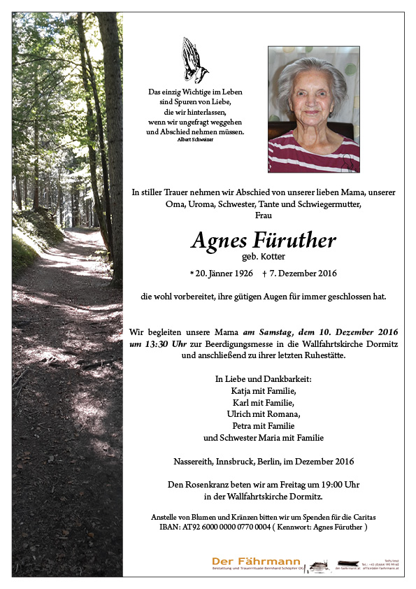 Zita Raggl (Falbesoner)Ruhe in Frieden Agnes