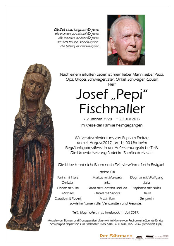 Kondolenzbuch für Fischnaller Josef