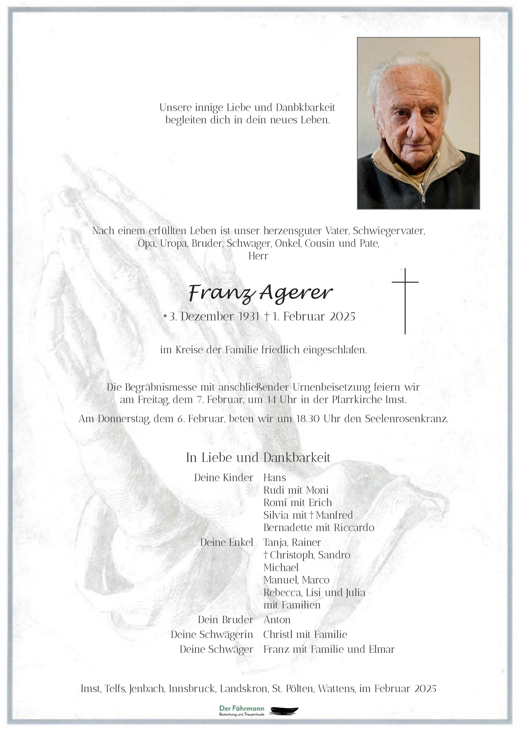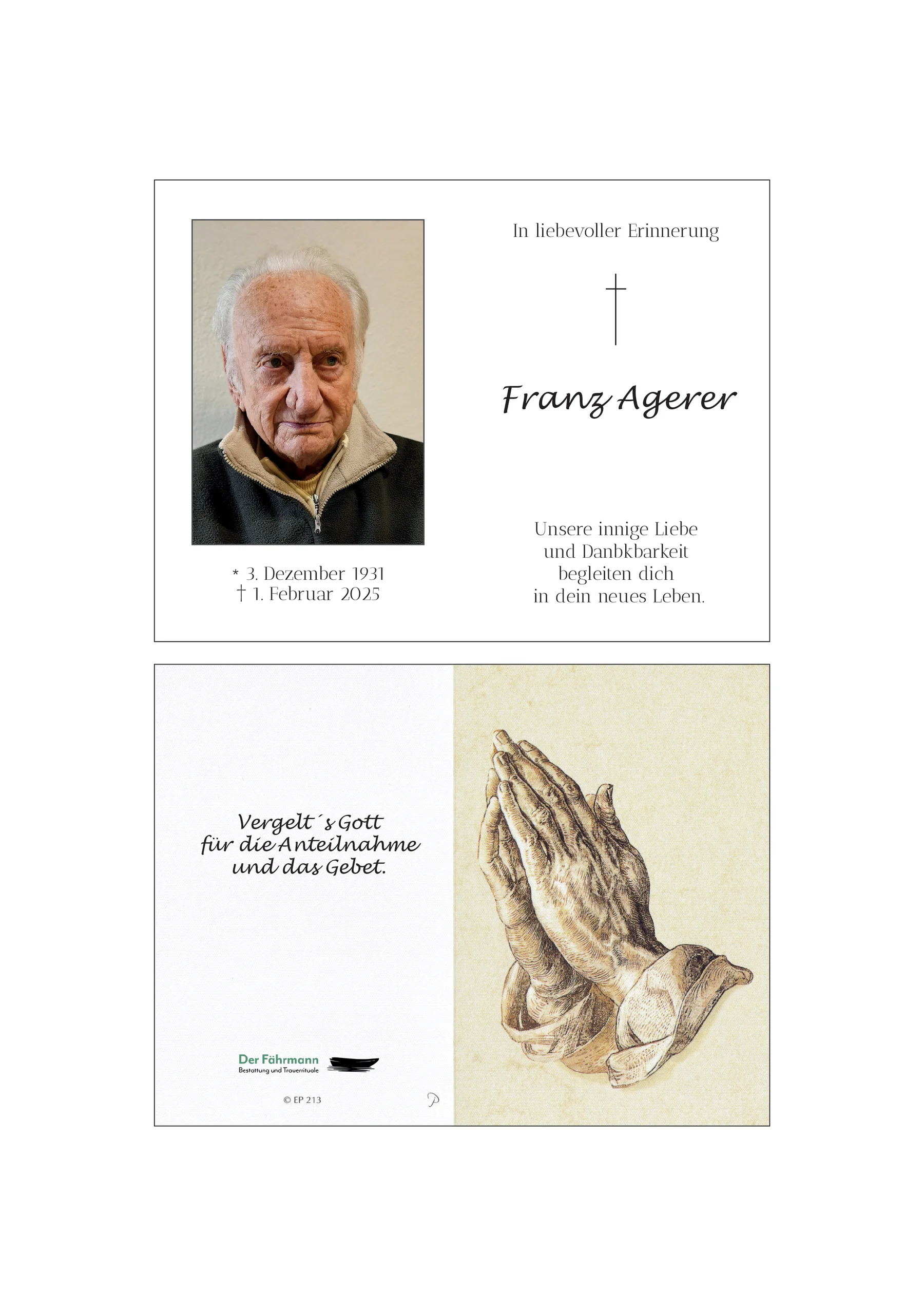 Kondolenzbuch für Franz Agerer