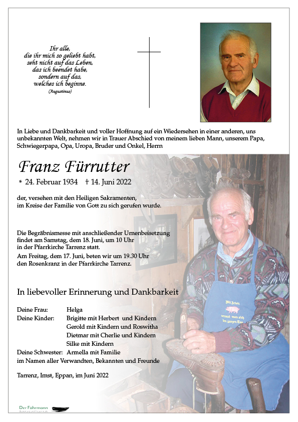 Kondolenzbuch für Franz Fürrutter