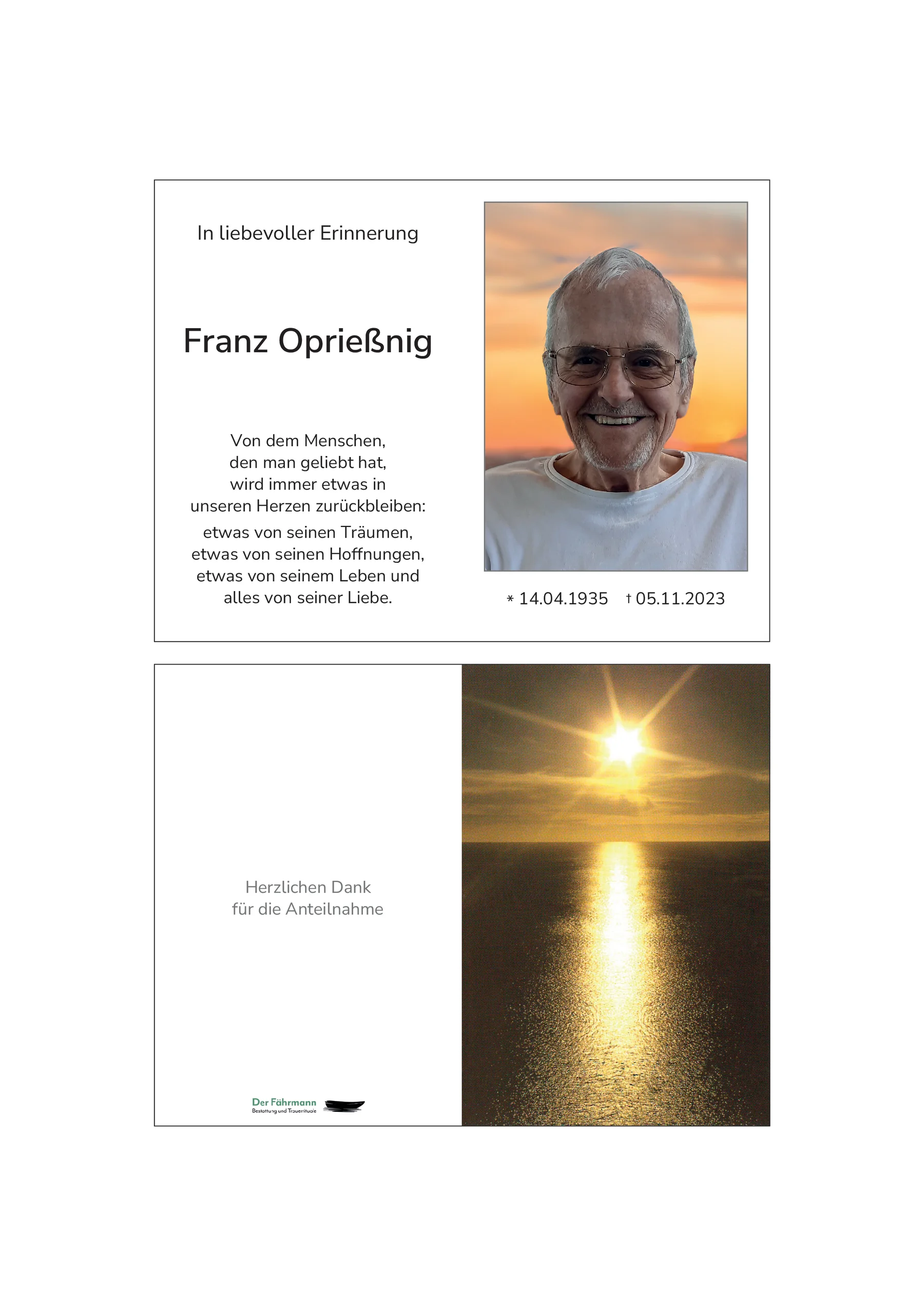 Ruhe in Frieden Franz ! Hannes und Barbara