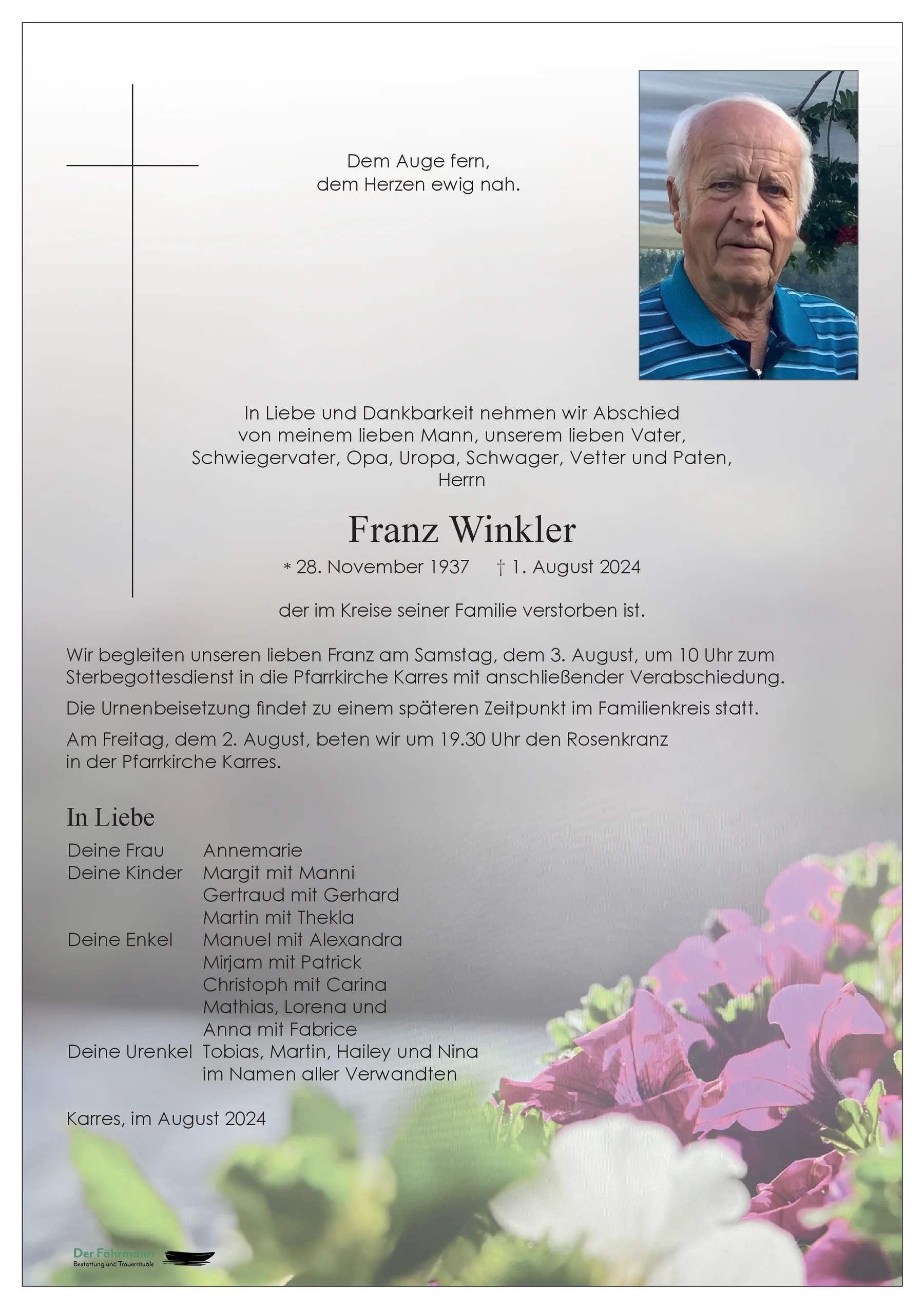 Ruhe in Frieden lieber Franz. Fam. Winkler Reinhold