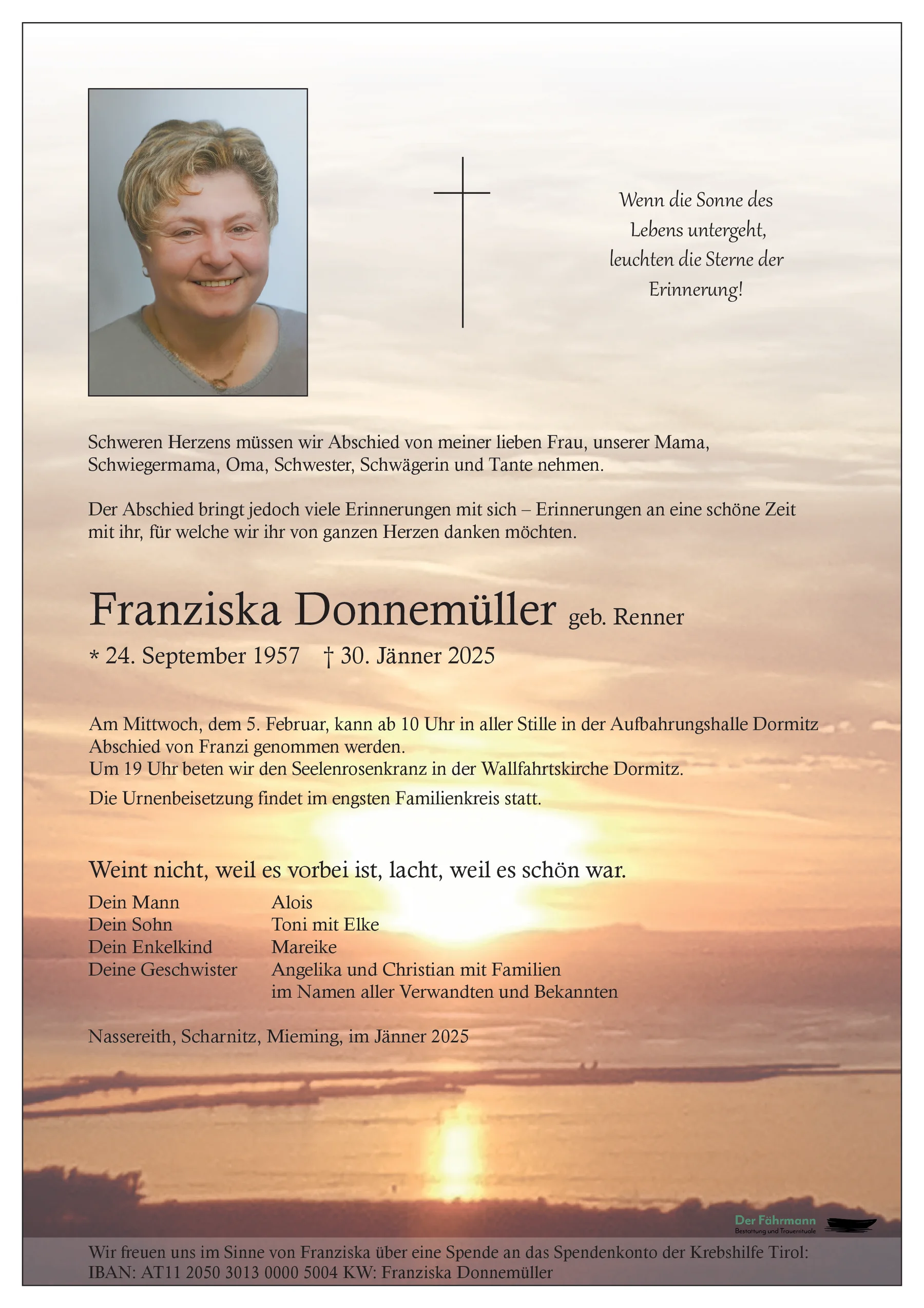 Wenn die Sonne des Lebens untergeht dann leuchten die Sterne der Erinnerung Ruhe in Frieden liebe Franzi im Grdenken Isabella mit Thomas Kuen