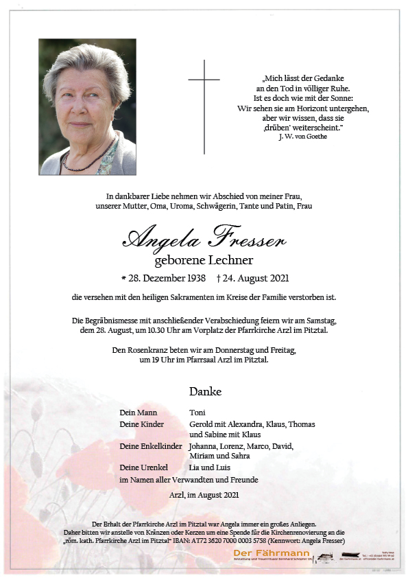 Kondolenzbuch für Fresser Angela