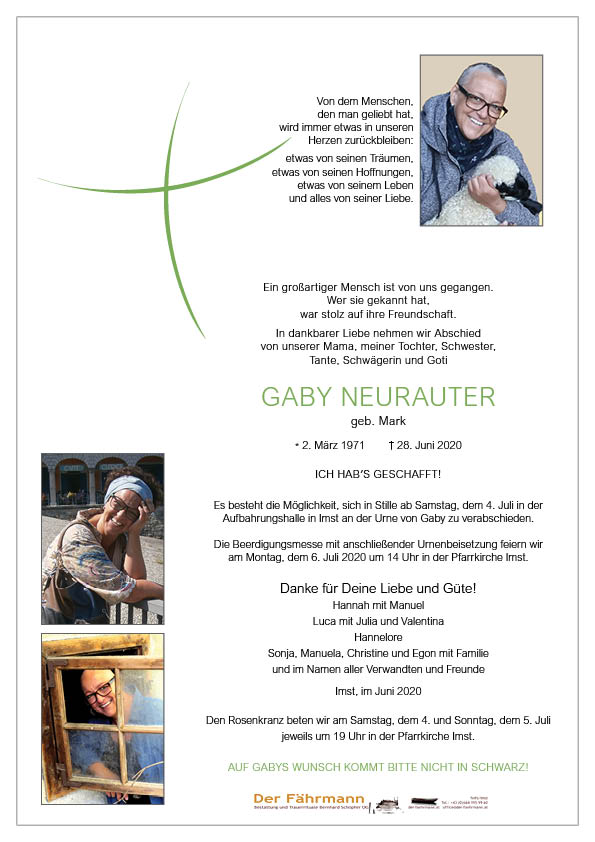 Kondolenzbuch für Gabriele Neurauter