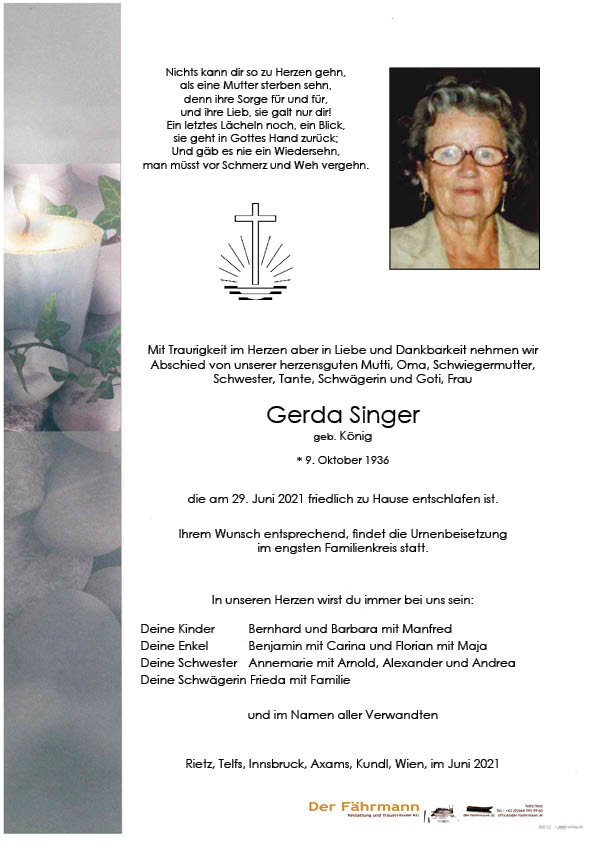 Aufrichtige Anteilnahme Gertrud Singer mit Familie
