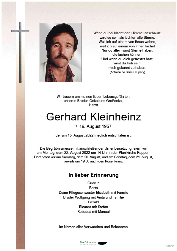 Gerhard Kleinheinz 19.08.1957 15.08.2022 Roppen Beisetzungs-Ort: Friedhof Roppen Aufbahrungs-Ort: Aufbahrungshalle Roppen Parte Gedenkkerzen Kondolenzen Parte downloaden Gedenkkerzen für Gerhard Kleinheinz 125 Einträge Kerze anzünden A Allerheilige lichtel für di A lichtel zum 1 Todestag A Allerheilige lichtel für di A Lichtlein aus Tarrenz Ruhe in Frieden Sabrina Walch Sabrina Walch Ruhe in Frieden In stillem Gedenken Carola mit Familie Eller Christoph und Mary mit Familie Stadler Günther zum Gedenken! Rosmarie Raggl Sarah und Miriam Sigrid und Klaus Heiß Unser herzliches Beileid ! Gabi und Hartmut Jais Tamara Marhold und Roswitha Ruhe in Frieden Ruhe in Frieden Magdalena Safer Ruhe in Frieden. Domenic, Jeannine & Grace Ruhe in Frieden. Domenic, Jeannine & Grace Ruhe in Frieden. Domenic, Jeannine & Grace Ruhe in Frieden. Domenic, Jeannine & Grace Ruhe in Frieden. Domenic, Jeannine & Grace Helena u. Gerhard Frischmann Christian Pfausler mit Familie Ruhe in Frieden! Regina Haller Maria Regina Bischof Hirschegger Margit Hirschegger Margit Hirschegger Margit Hirschegger Margit Hirschegger Margit Hirschegger Margit A Geburtstag s Kerzerl Ruhe in Frieden Ruhe in Frieden Ruhe in Frieden Helga Paulweber R. I. P. Gisela&Walter Eiter In stillem Gedenken Maria Pohl Helmut und Burgi Köll Heute wärst du 65 geworden Alles Gute da oben 🕯rebekka Heute wärst du 65 geworden Alles Gute da oben 🕯rebekka Ruhe in Frieden Christine und Ricki Aufrichtige Anteilnahme Veronika Schuchter Fam. Rauch Stefan und Gitti Ruhe in Frieden Bernhard und Rita mit Familie Ruhe in Frieden Bernhard und Rita mit Familie Ruhe in Frieden Bernhard und Rita mit Familie Ruhe in Frieden Stadler Berta Fam. Angelika und Werner Köll Fam. Auer Thomas u. Sabine Ruhe in Frieden. Fam.Reinstadler Klaus Ruhe in Frieden. Fam.Reinstadler Klaus Ruhe in Frieden. Fam.Reinstadler Klaus Harald Auer mit Familie Fam. Köll Margit und Hansjörg In Innigem Gedenken Rosmarie Mayr mit Kinder Ruhe in Frieden!! Ute In lieber Erinnerung A Liachtl aus Obsteig! Ruhe in Frieden! Familie Kurt und Nina Rangger Ruhe in Frieden Vroni und Luigi A Lichtl aus dem Pitztal Ein Licht aus Roppen Ruhe in Frieden!🕯️ Gute Reise, Fam. Roman Huter Roppen Ruhe in Frieden Luis&Brigitte Krabichler Ruhe in Frieden! Johannes und Annemarie Köll Ruhe in Frieden Gerlinde In stiller Anteilnahme AgnesHuber Elvira & Andreas mit Maximilian & Raphael R.I.P. Schuler Peter Roppen Muglach anton Muglach anton Herr gib ihn die ewige Ruhe Herr gib ihn die ewige Ruhe Herr gib ihn die ewige Ruhe Herr gib ihn die ewige Ruhe Herr gib ihn die ewige Ruhe Herr gib ihn die ewige Ruhe Herr gib ihn die ewige Ruhe Herr gib ihn die ewige Ruhe Herr gib ihn die ewige Ruhe Herr gib ihn die ewige Ruhe Herr gib ihn die ewige Ruhe Herr gib ihn die ewige Ruhe Herr gib ihn die ewige Ruhe Herr gib ihn die ewige Ruhe Ruhe sanft! Ruhe in Frieden Monika & Arnold Rauth Ruhe in Frieden lieber Gerhard ! Charly, Landeck Ruhe in Frieden lieber Gerhard ! Charly, Landeck Ruhe in Frieden Gerhard, Lisi mit Katja, Sara und Selina Fam. Barbara Furtner Ruhe in Frieden 🕯️ Wolfgang und Anita A Kerzl auf dein Weg Christian Schweig A Kerzl auf dein Weg Christian Schweig A Kerzl auf dein Weg Christian Schweig A Kerzl auf dein Weg Christian Schweig A Kerzl auf dein Weg Christian Schweig A Kerzl auf dein Weg Christian Schweig A Kerzl auf dein Weg Christian Schweig A Kerzl auf dein Weg Christian Schweig A Kerzl auf dein Weg Christian Schweig A Kerzl auf dein Weg Christian Schweig A Kerzl auf dein Weg Christian Schweig A Kerzl auf dein Weg Christian Schweig A Kerzl auf dein Weg Christian Schweig A Kerzl auf dein Weg Christian Schweig A Kerzl auf dein Weg Christian Schweig A Kerzl auf dein Weg Christian Schweig Hannes Haller Fam.Peter & Conny Abrahams Astrid Köck Ruhe in Frieden. Helen and Family Moch's guet Gerhard, Danke für olls. Xandra, Tobias, Dominik Theres Sattlecker mit Familie Machs guat Gerhard. Sabrina mit Familie Ruhe in Frieden! Erich & Kathrin 🕯️ Ruhe in Frieden Gerhard 🕯Deine Schwester Lisbeth Ruhe in Frieden rebekka und Manuel mit Familie 🕯 Eine gute Überfahrt Bestattung Der Fährmann Eine Kerze für Gerhard Kleinheinz Ihr Name* Ihre Nachricht oder Name* E-Mail-Adresse* Mit dem Klicken auf "Kerze anzünden" erklären Sie sich mit unseren Datenschutzbestimmungen einverstanden. Kondolenzbuch für Gerhard Kleinheinz 0 Einträge Kondolenz verfassen Ihr Abschiedsgruß an Gerhard Kleinheinz Ihr Name* E-Mail-Adresse* Ihre Nachricht* Mit dem Klicken auf "Gruß absenden" erklären Sie sich mit unseren Datenschutzbestimmungen einverstanden. Gerhard Kleinheinz 19.08.1957 – 15.08.2022 Parte Gedenkkerzen Kondolenzen Kerze anzünden Kondolenz verfassen