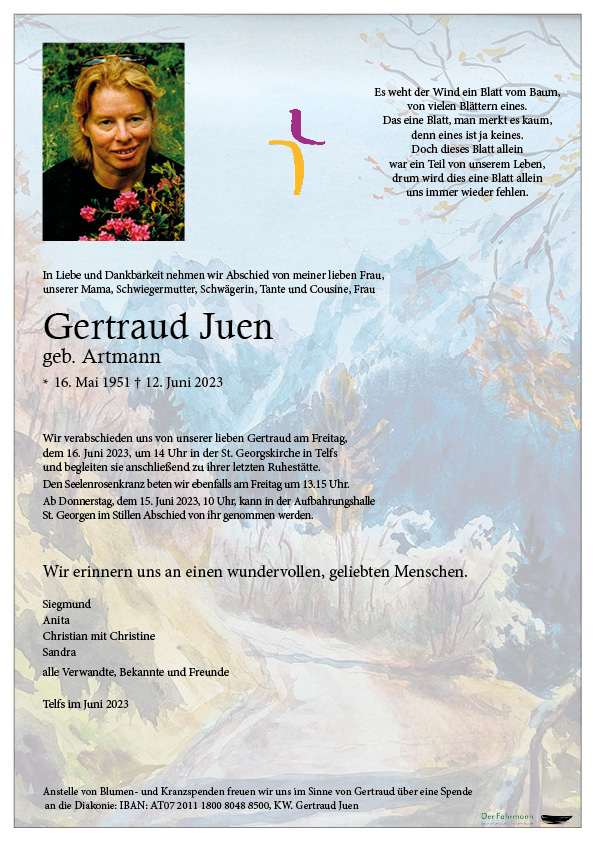 Kondolenzbuch für Gertraud Juen