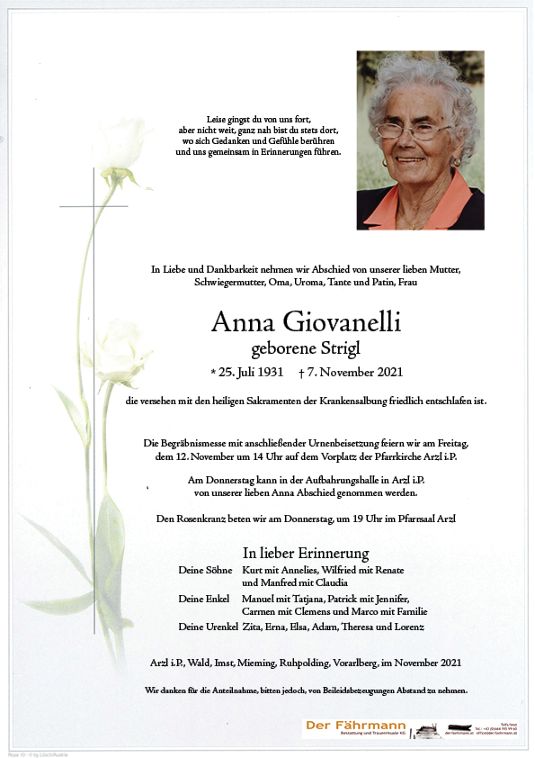Herzliches Beileid Fam. Götsch Anni