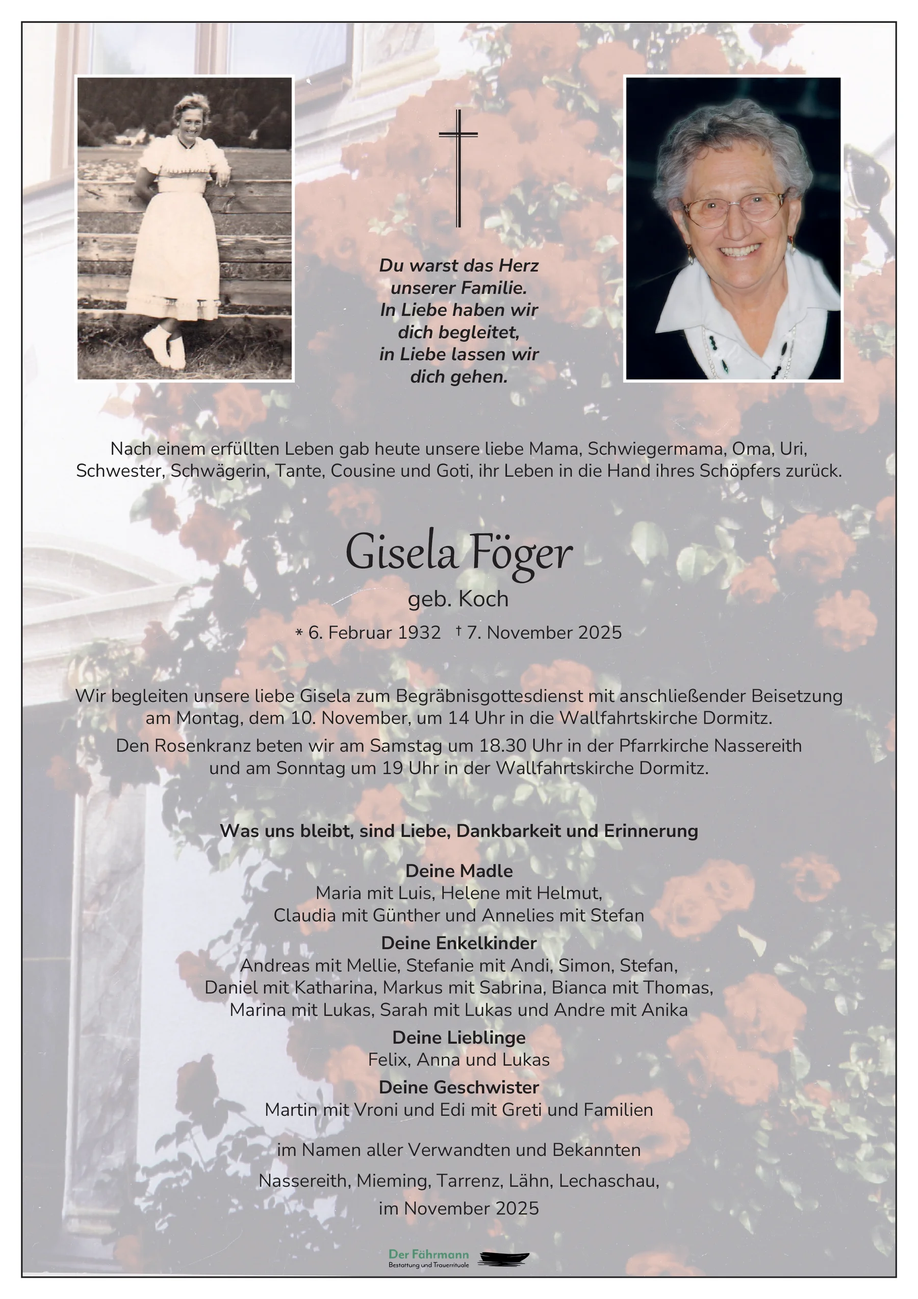 Liebe Annelies und liebe Trauerfamilie