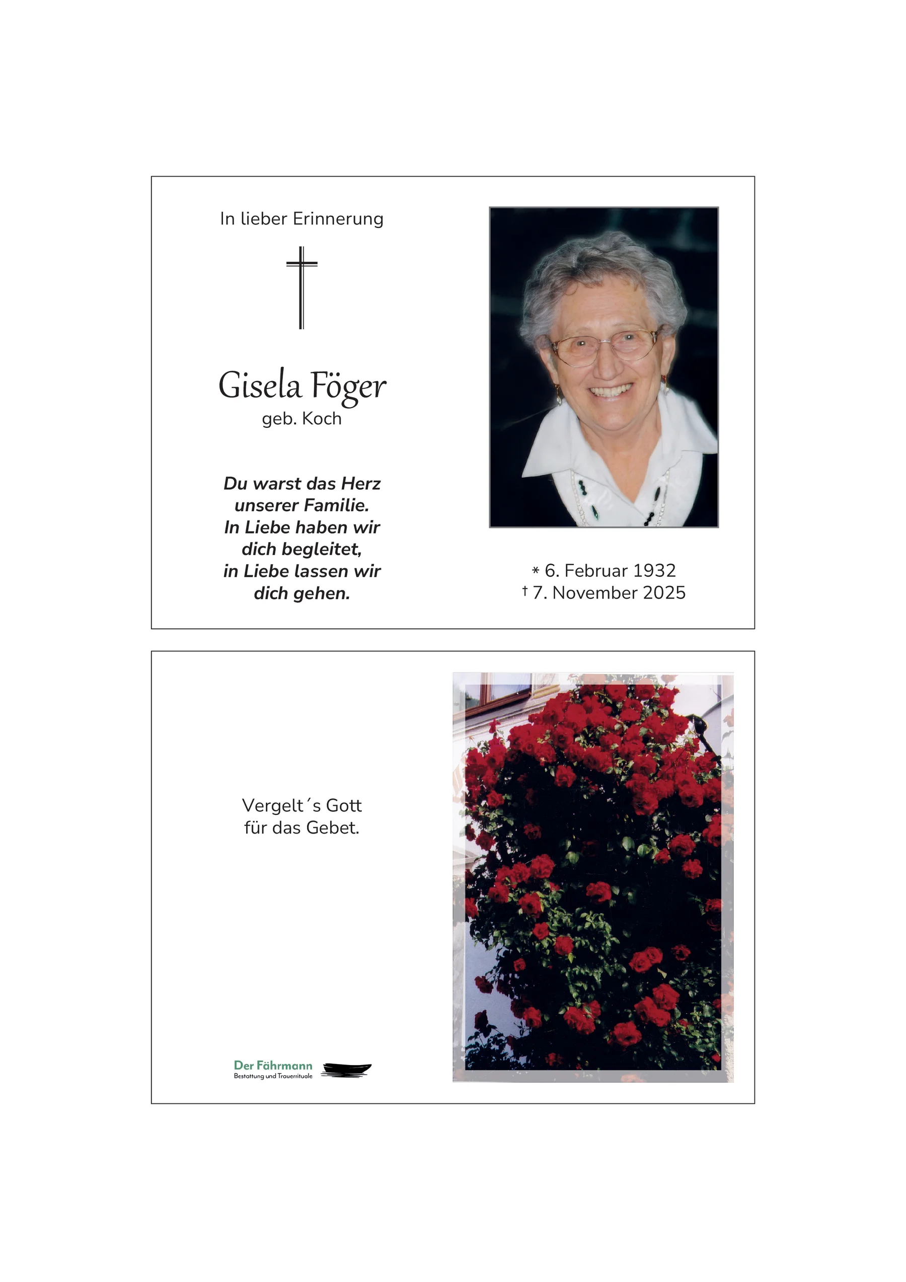 Kondolenzbuch für Gisela Föger