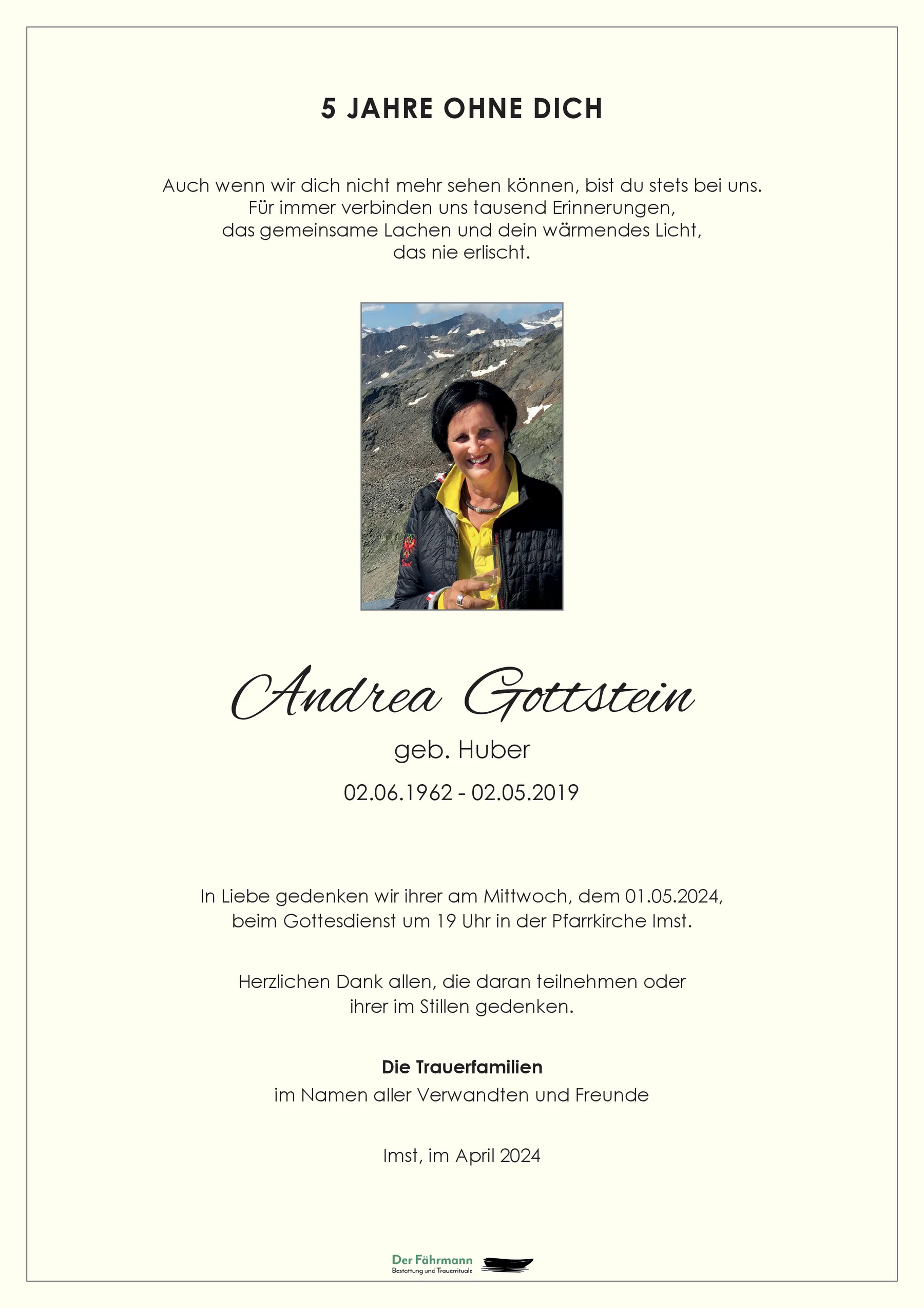Liebe Andrea, erst jetzt so langsam im Stande ein paar Zeilen zu schreiben, möchten wir „pfiati“ zu Dir sagen.