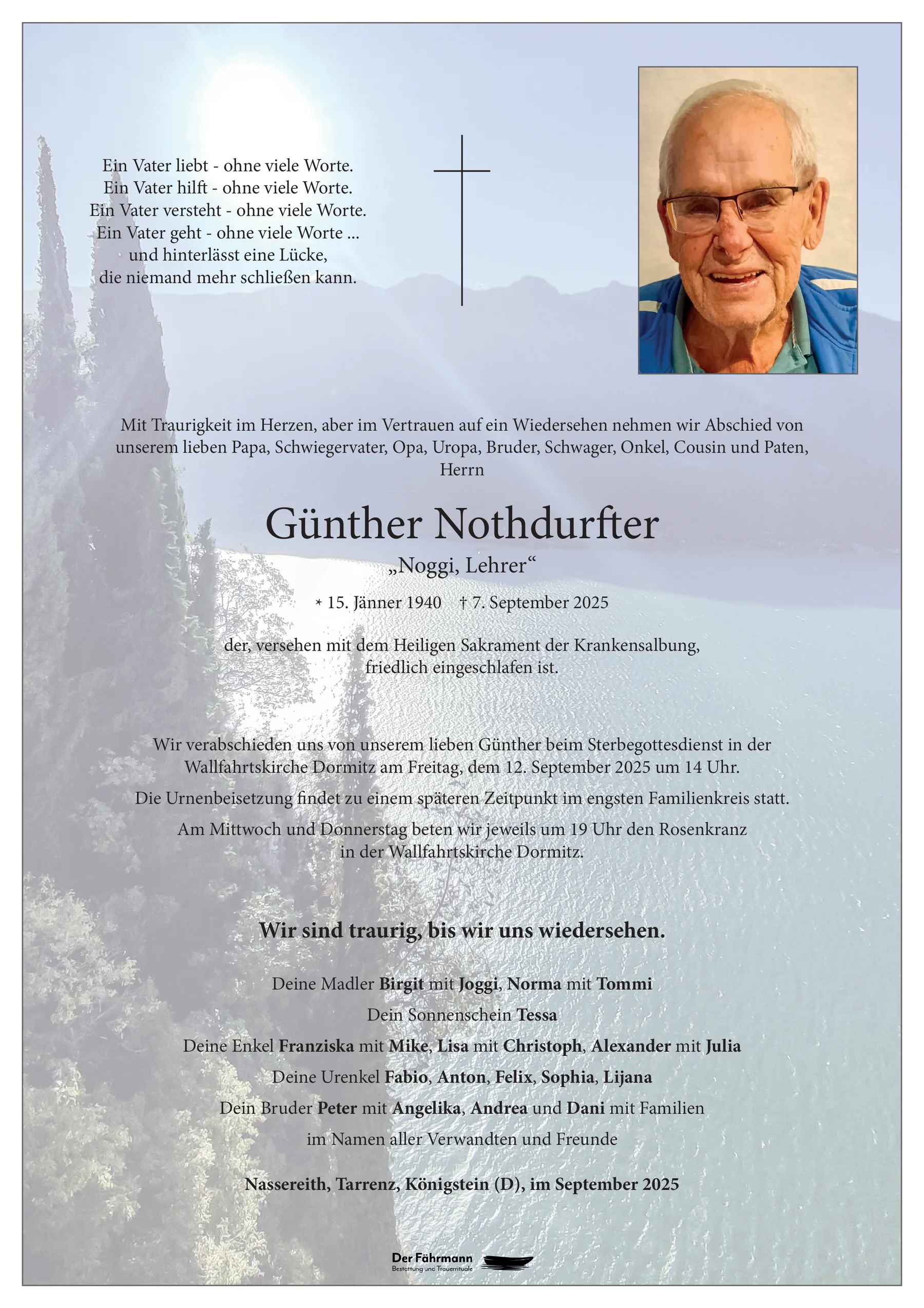 unser Günther, er ist nicht mehr unter uns. Diese Nachricht unmittelbar zu Schulbeginn hat uns alle von der Volksschule Nassereith zutiefst berührt und betroffen gemacht.