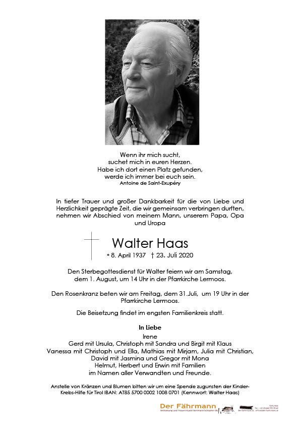 Mögen die schönen Erinnerungen an Walter euch Trost spenden.