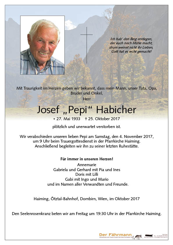 Kondolenzbuch für Habicher Josef