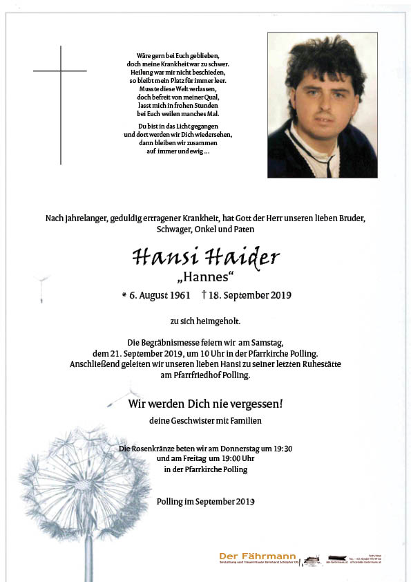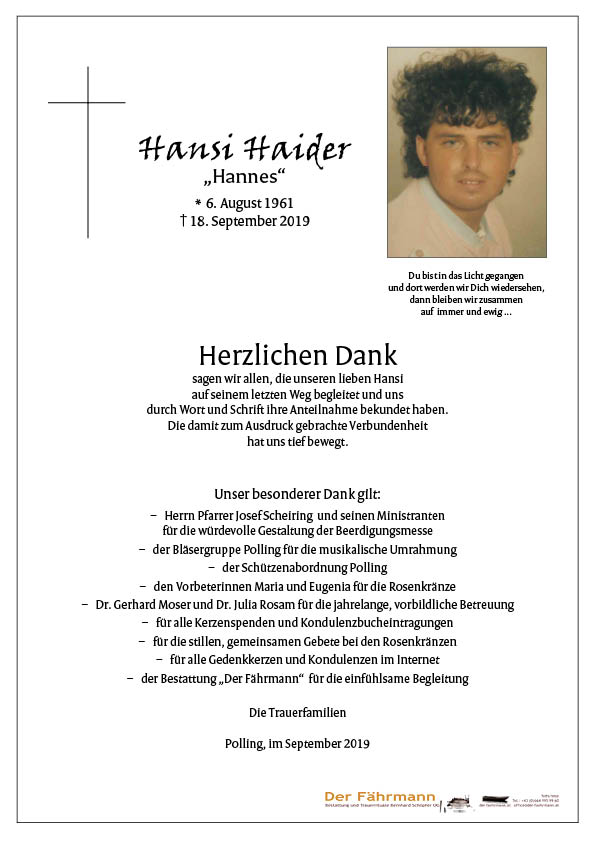 Ruhe in Frieden! Fam. Haider Manfred