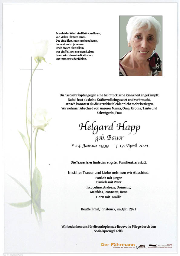 Kondolenzbuch für Happ Helgard