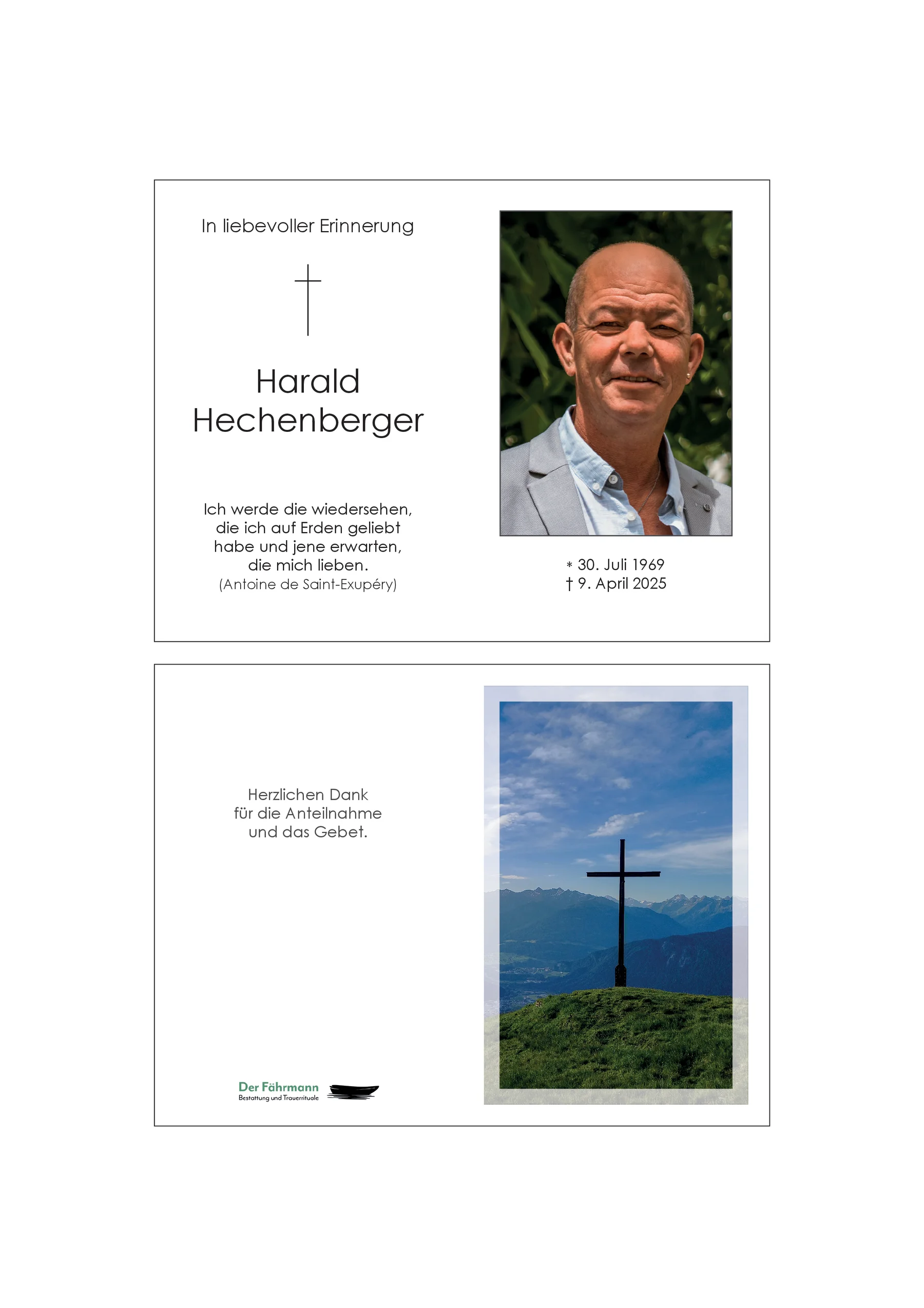 Lieber Harald, Ruhe in Frieden, Annemarie und Hansjörg Kathrein