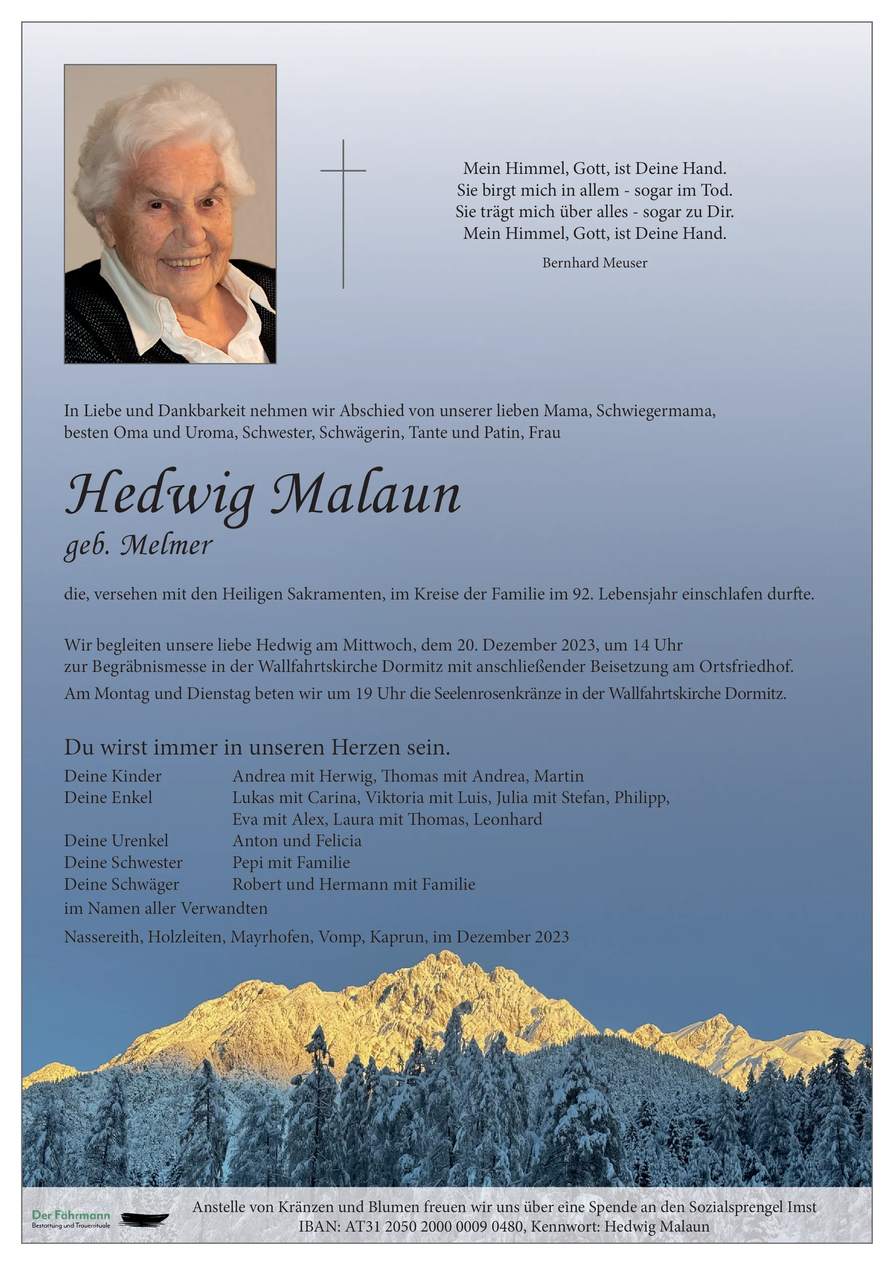 Danke liebe Hedwig für deine jahrelange Treue, du warst a besondere Kundin für mi.