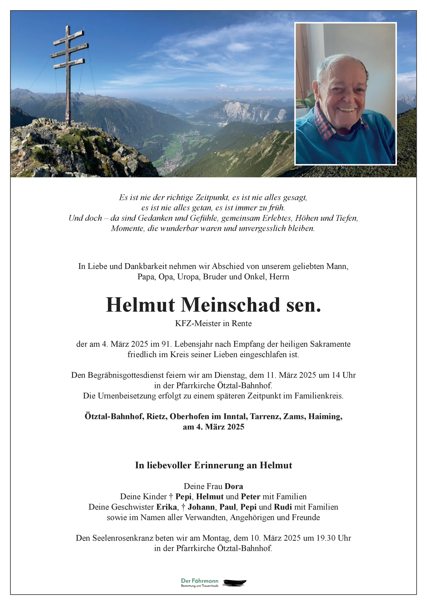 Ruhe in Frieden, lieber Helmut. Alfred Götsch, Rietz