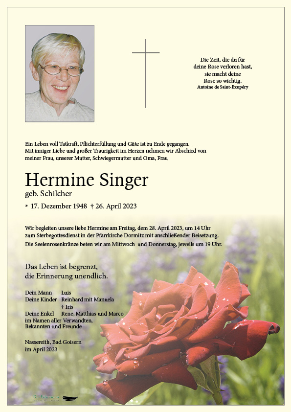Kondolenzbuch für Hermine Singer