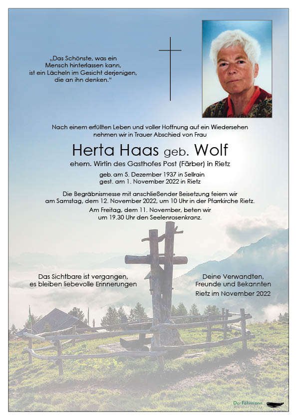 Ruhe in Frieden Herta! Fam. Scheiber Christine und Hansjörg