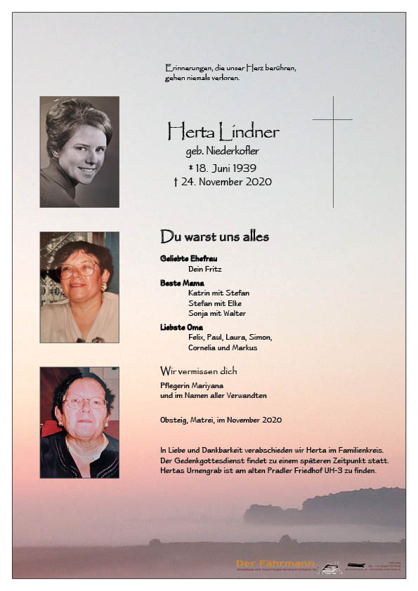 Liebe Herta, Ruhe in Frieden! Heinz, Margit, Sandra, Heinzi