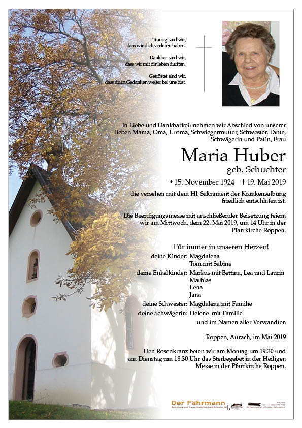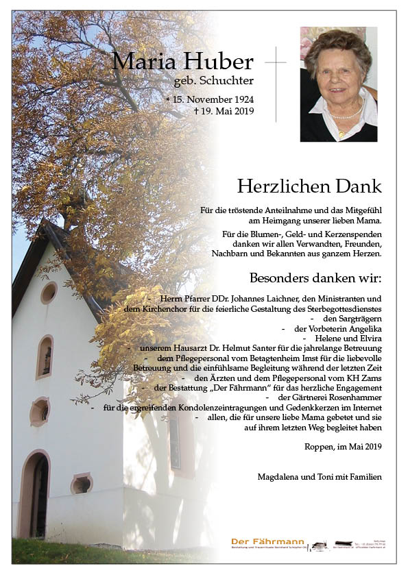 Kondolenzbuch für Huber Maria
