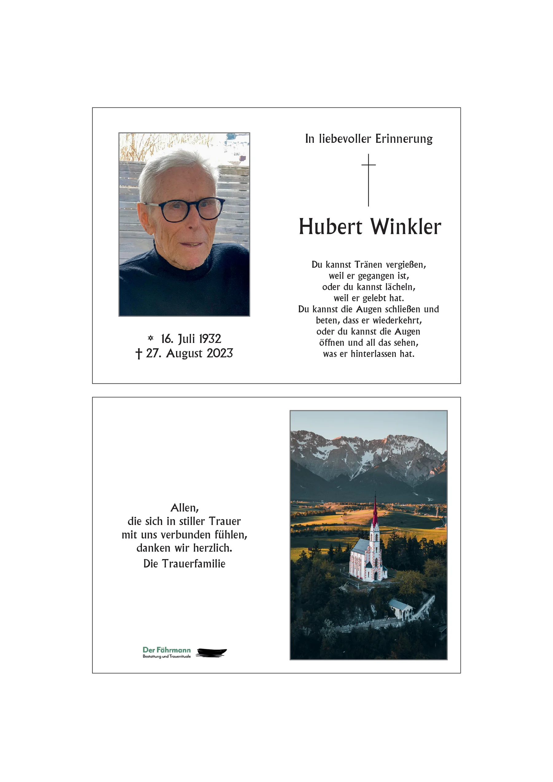 Mit tiefstem Bedauern haben wir von Huberts Ableben erfahren. In dieser Zeit des Verlusts möchten wir unser aufrichtige Anteilnahme ausdrücken. Hubert wird im Herzen weiterleben und seine Erinnerungen werden stets in den Gedanken sein.