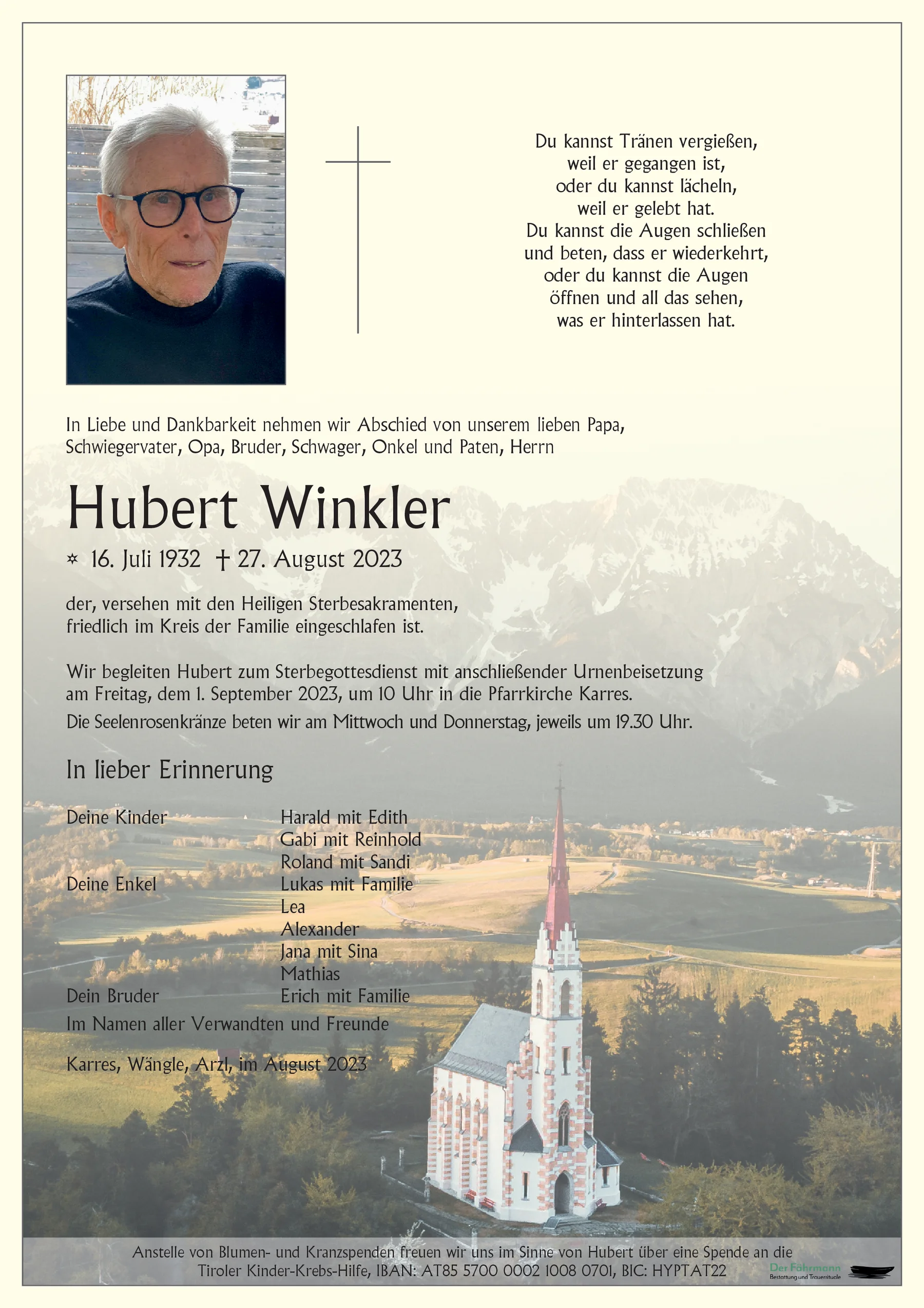 Herzliches Beileid! Daniela, Dr. Ennemoser, Imst