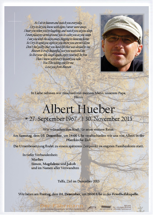 Kondolenzbuch für Hueber Albert
