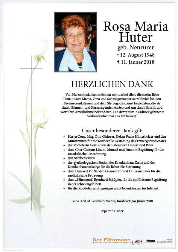 Kondolenzbuch für Huter Rosa Maria