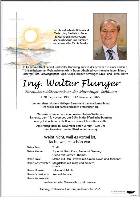 Kondolenzbuch für Ing. Walter Flunger