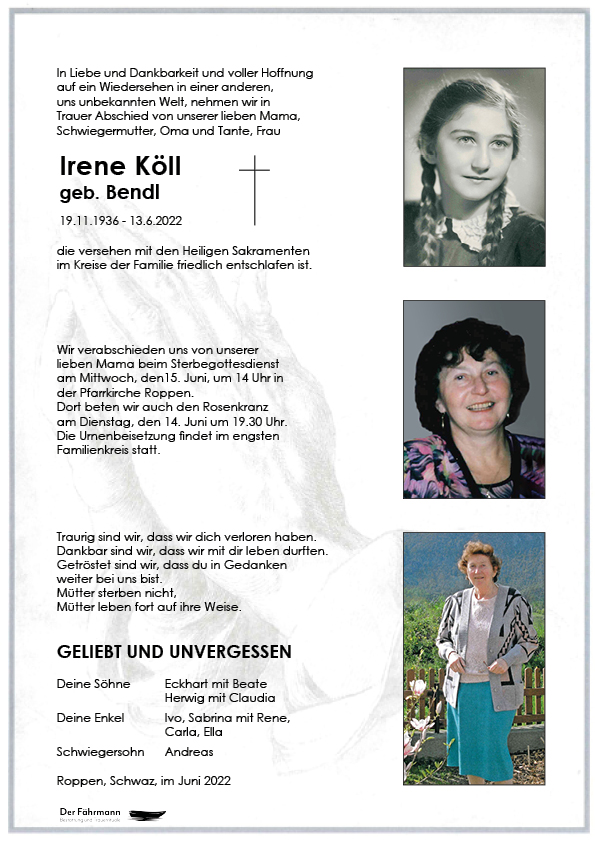 Kondolenzbuch für Irene Köll