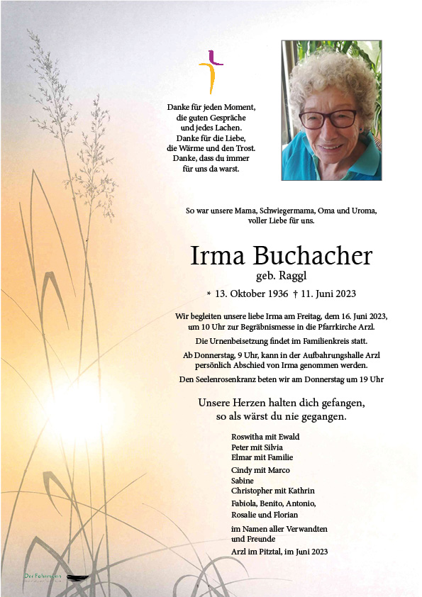 Liebe Irma, es war schian di zu kenna....hab mi immer gfrebt mit dir zu ratschen.....du warst ein wundervoller Mensch....Ruhe in Frieden....