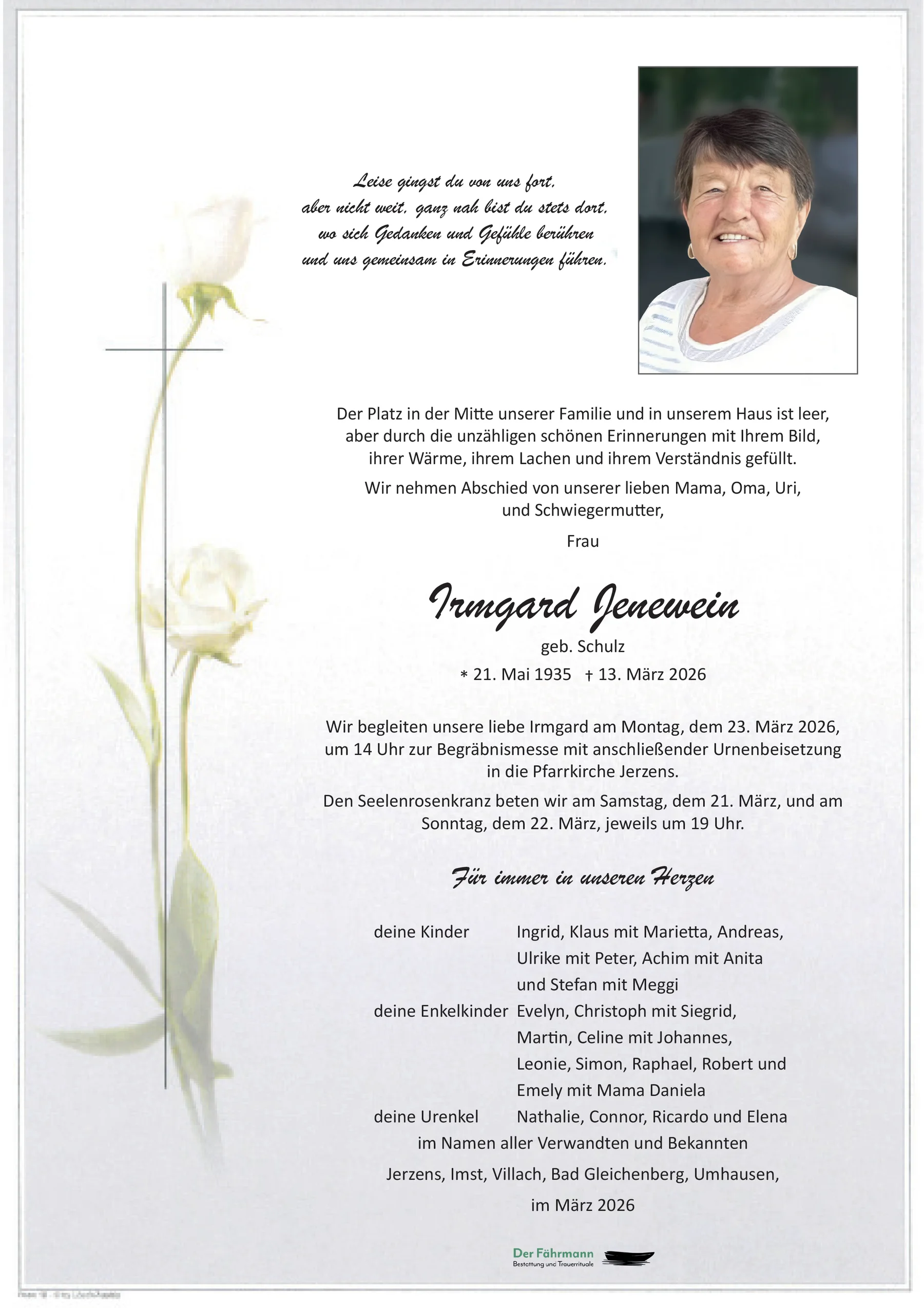Unser aufrichtiges Beileid? Fam. Hugo und Antonia Rimml