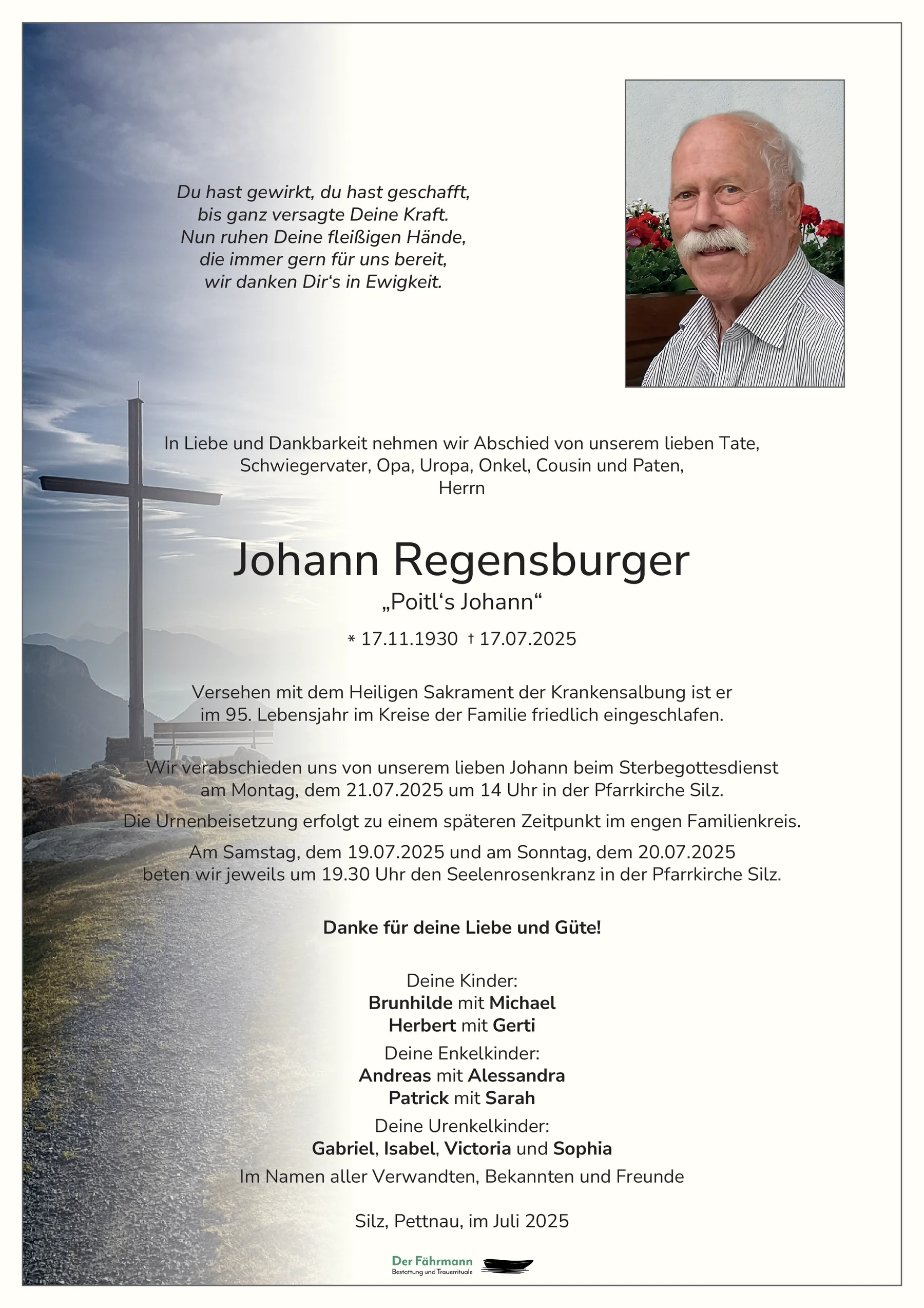 Mit dem Tod meines lieben Patenonkel Johann verliert die Welt einen wertvollen Menschen,aber der Himmel gewinnt eine Seele.