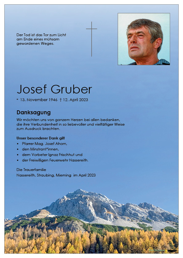 Meine Lieben, es tut mir aufrichtig leid, dass Josef nicht mehr bei Euch sein kann, für mich kommt diese Nachricht sehr plötzlich.
