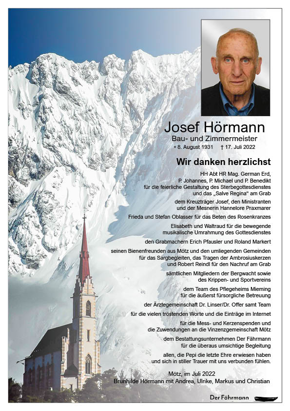 Ich bin sehr traurig, habe eben vom Ableben von meinen guten Freund Pepi erfahren. Bei meinem letzten Besuch haben wir beide uns bereits gegenseitig verabschiedet in der Hoffnung auf ein Wiedersehen. Gerne haette ich bei seinem Begraebnis meine Dankesworte angebracht. Leider sind wir derzeit im Urlaub in Island und koennen deshalb nicht dabei sein. Euch allen unsere herzliche Anteilnahme. Heinrich mit Burgi