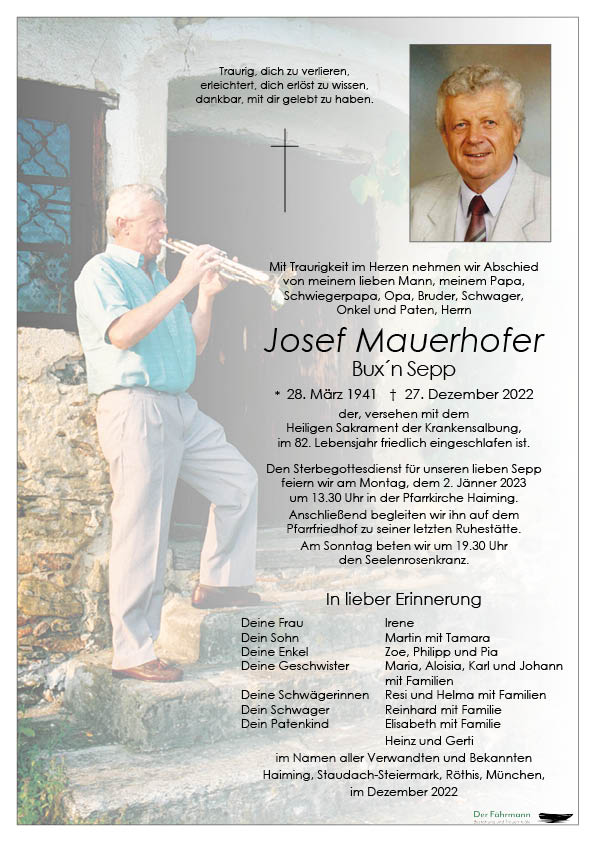 wir werden Sepp in liebevoller Erinnerung behalten.
