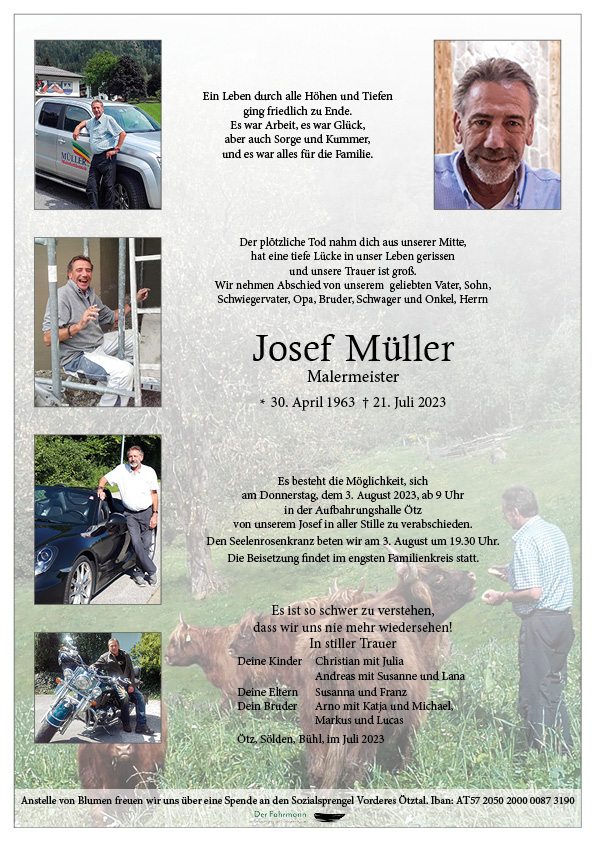 Wir wünschen euch viel Kraft und Trost in der Zeit des Abschiednehmens und viele schöne Erinnerungen an euren Josef.