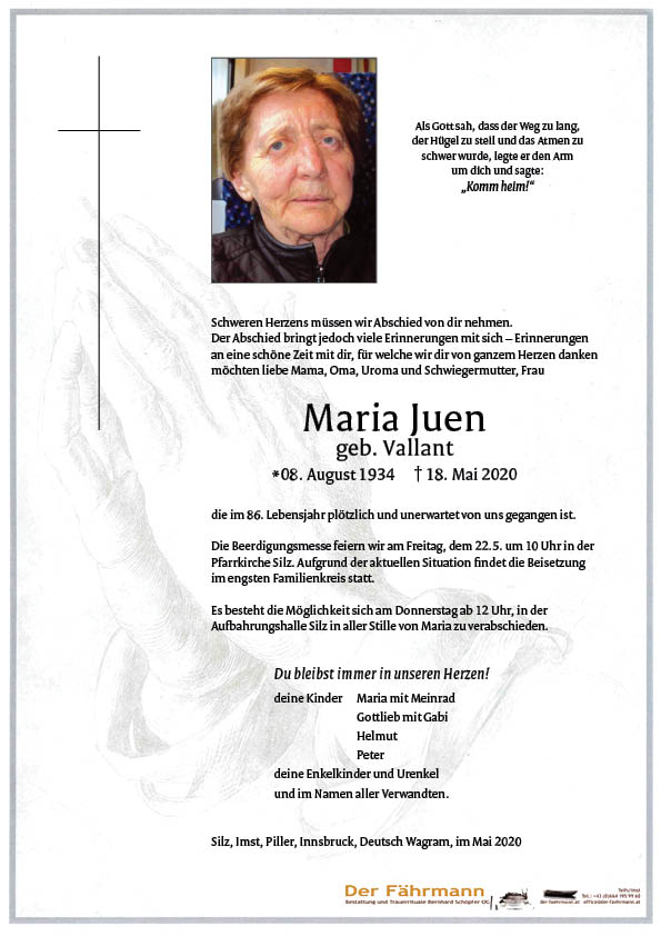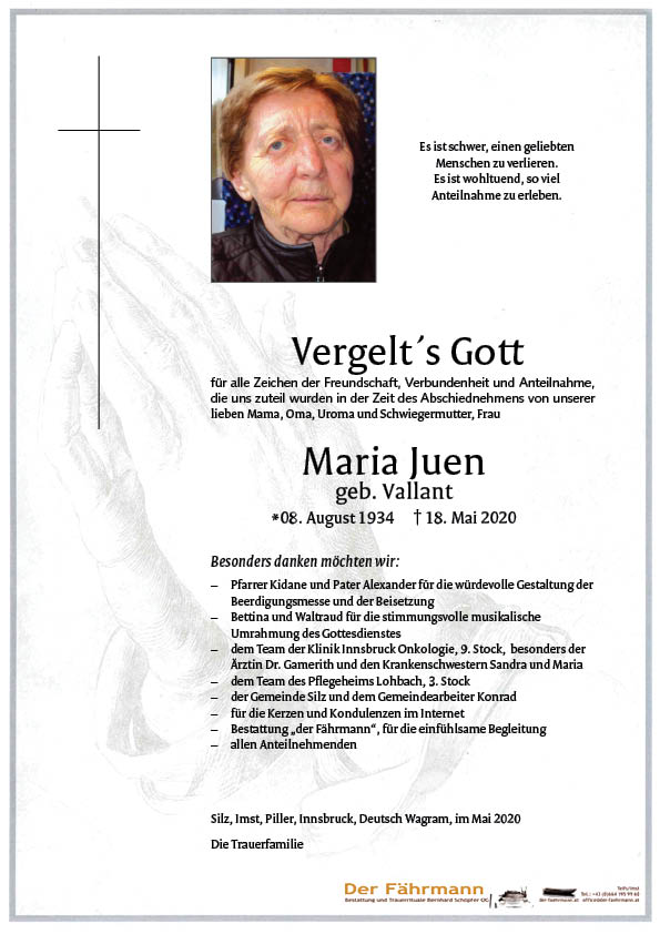 Kondolenzbuch für Juen Maria