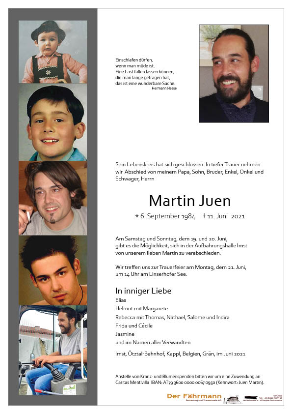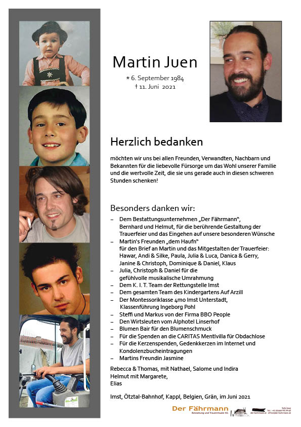 Kondolenzbuch für Juen Martin