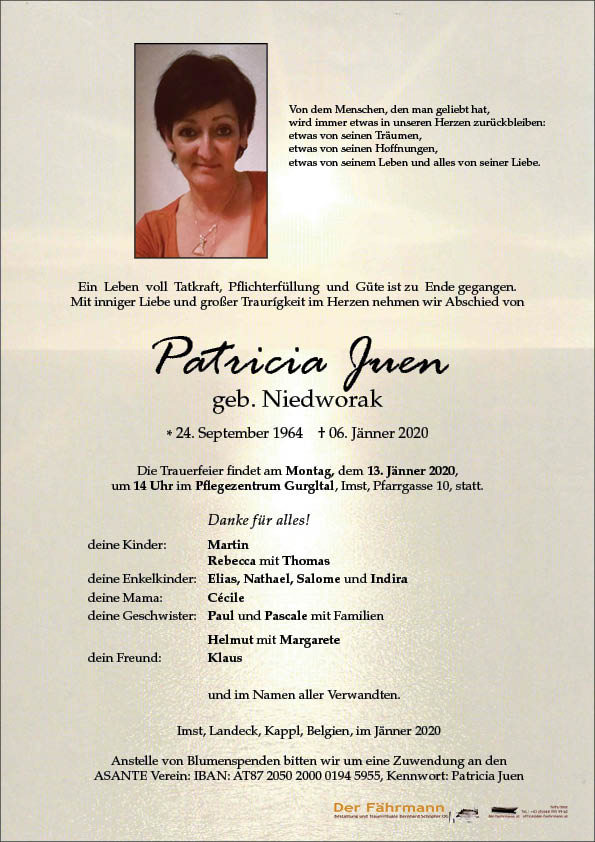 Kondolenzbuch für Juen Patricia