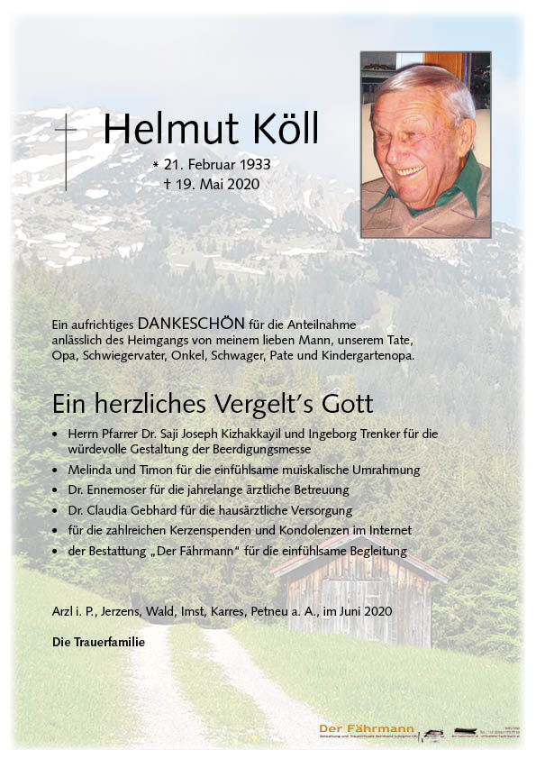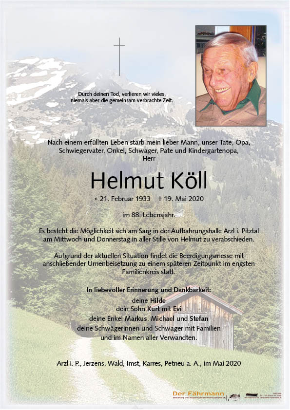 Aufrichtige Anteilnahme, Fam. Walter Köll, Pettneu