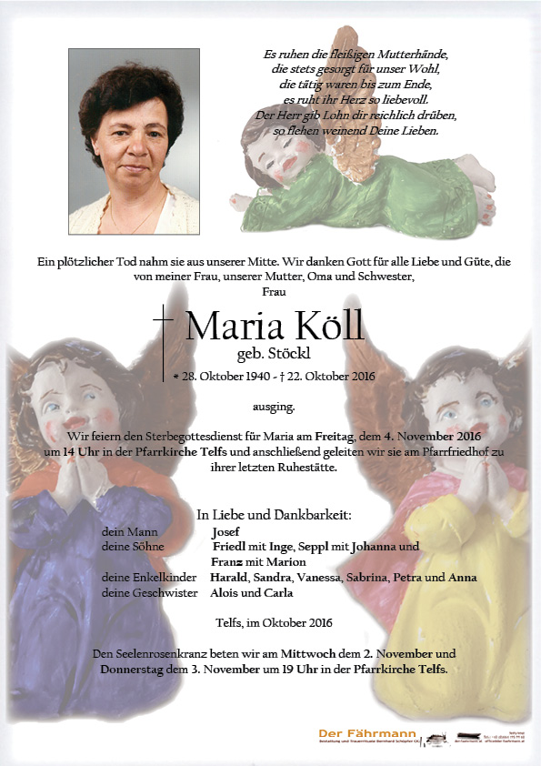 Lieber Josef, unser aufrichtiges Beileid zum Tod deiner Mutter!