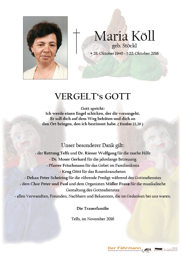 Wir fühlen mit Euch den Verlust von Maria. Hilde und Hermann