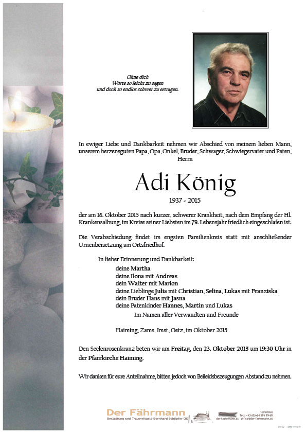 Ruhe in Frieden, Onkel Adi - Angelika und Hans Oberkofler