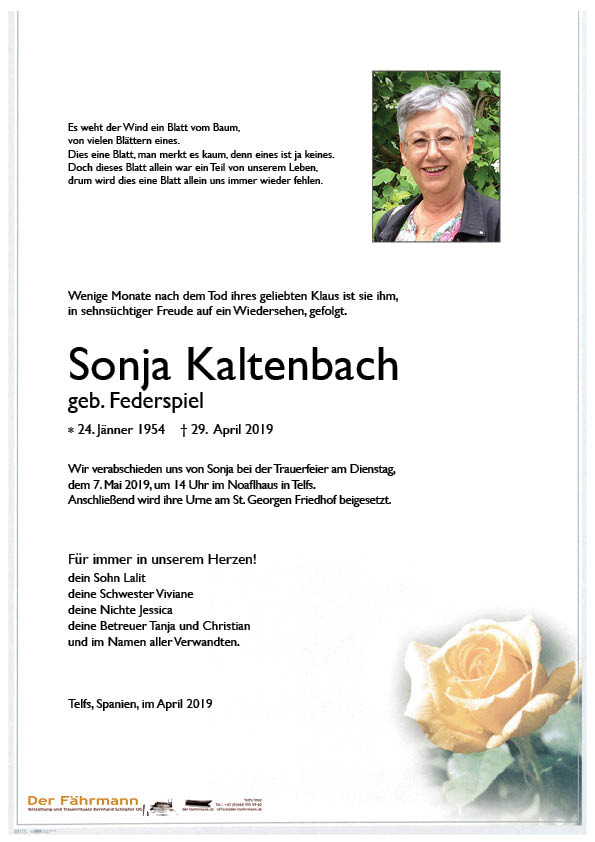 Kondolenzbuch für Kaltenbach Sonja